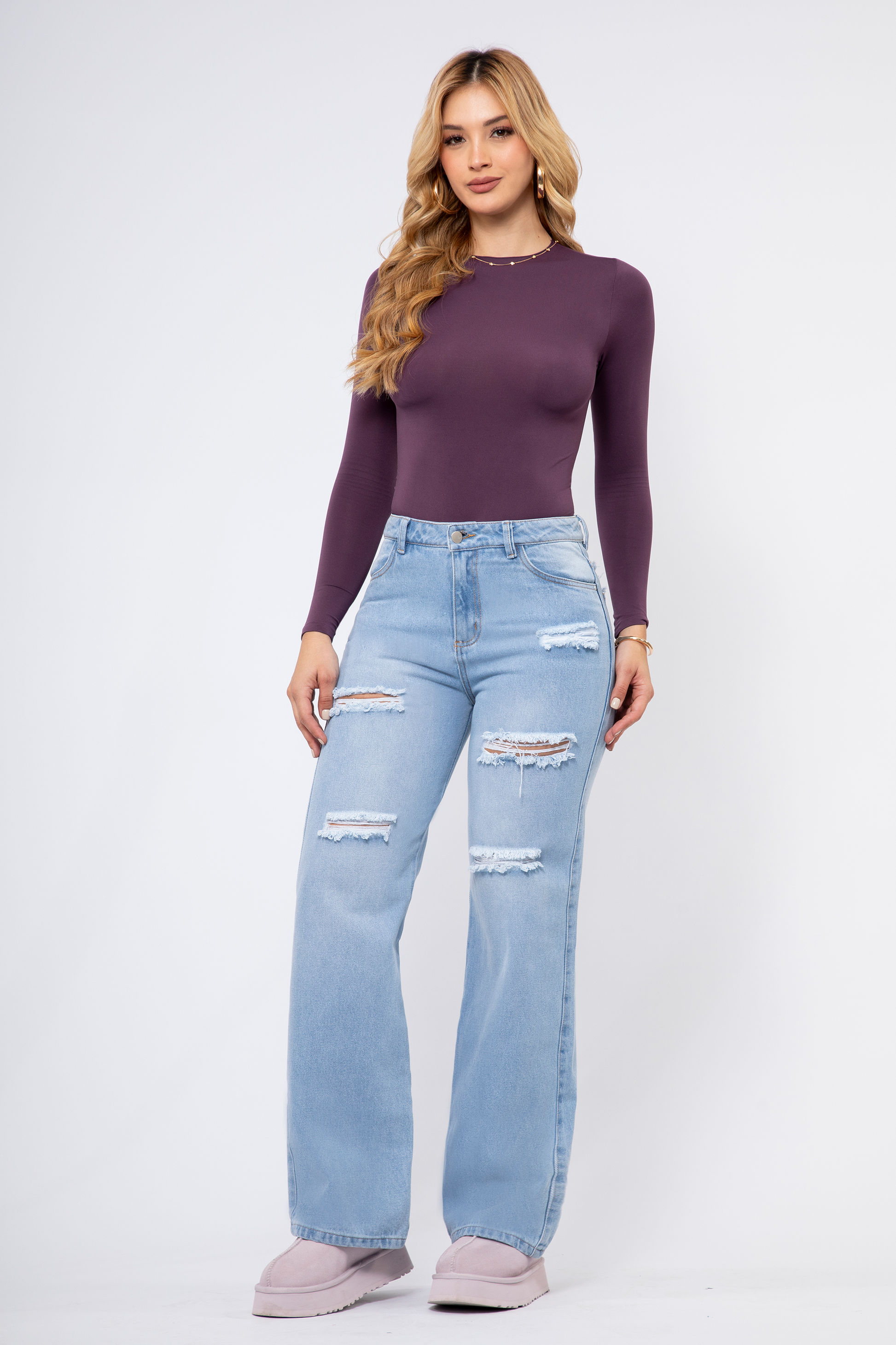 1. Jean silueta straight leg con múltiples rotos, efectos desgaste estratégicamente ubicados, un básico urbana personalidad, denim rígido 100 % algodón, que aporta mucho estilo.