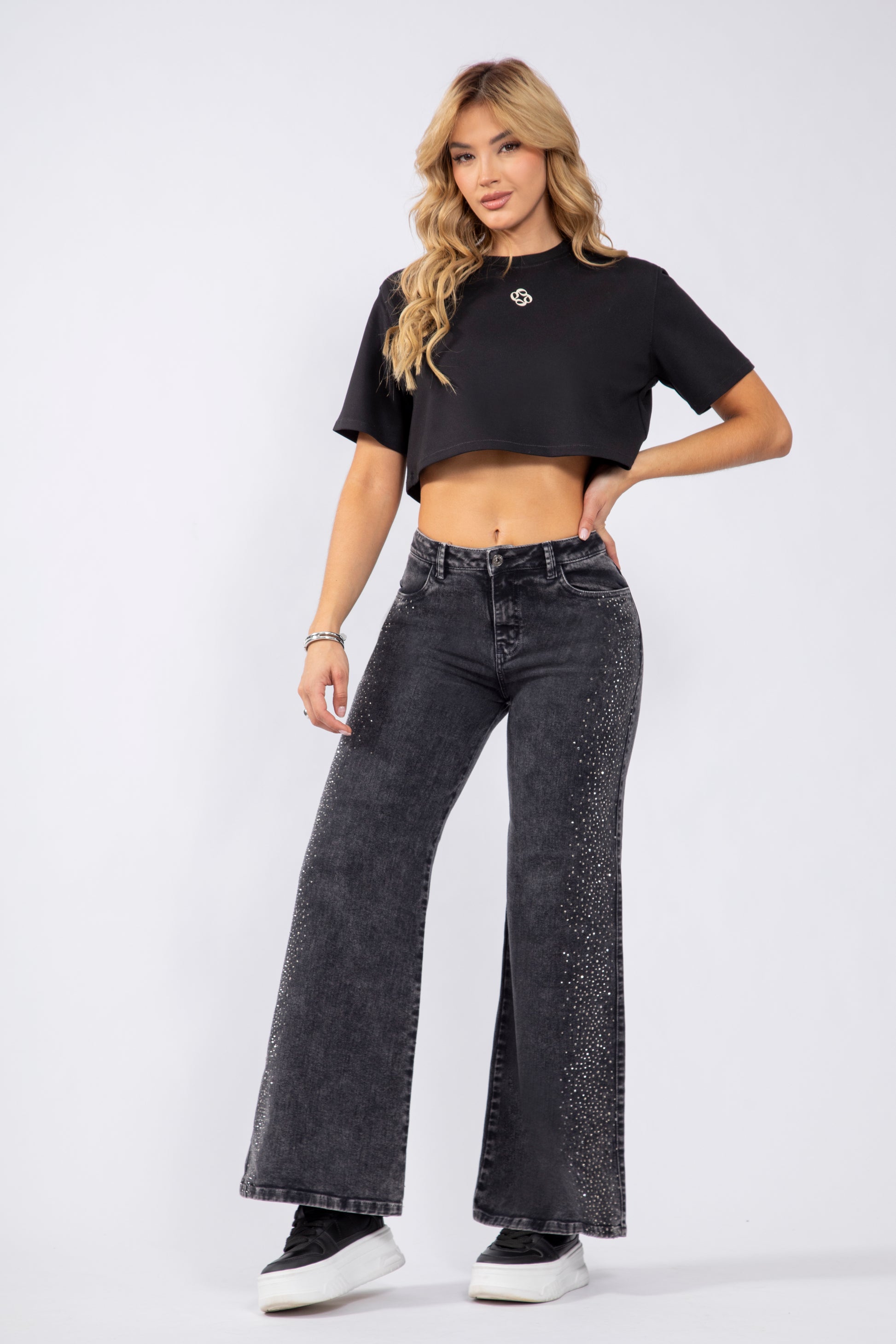 PANTALON WIDE GRIS HUMO CON BRILLOS